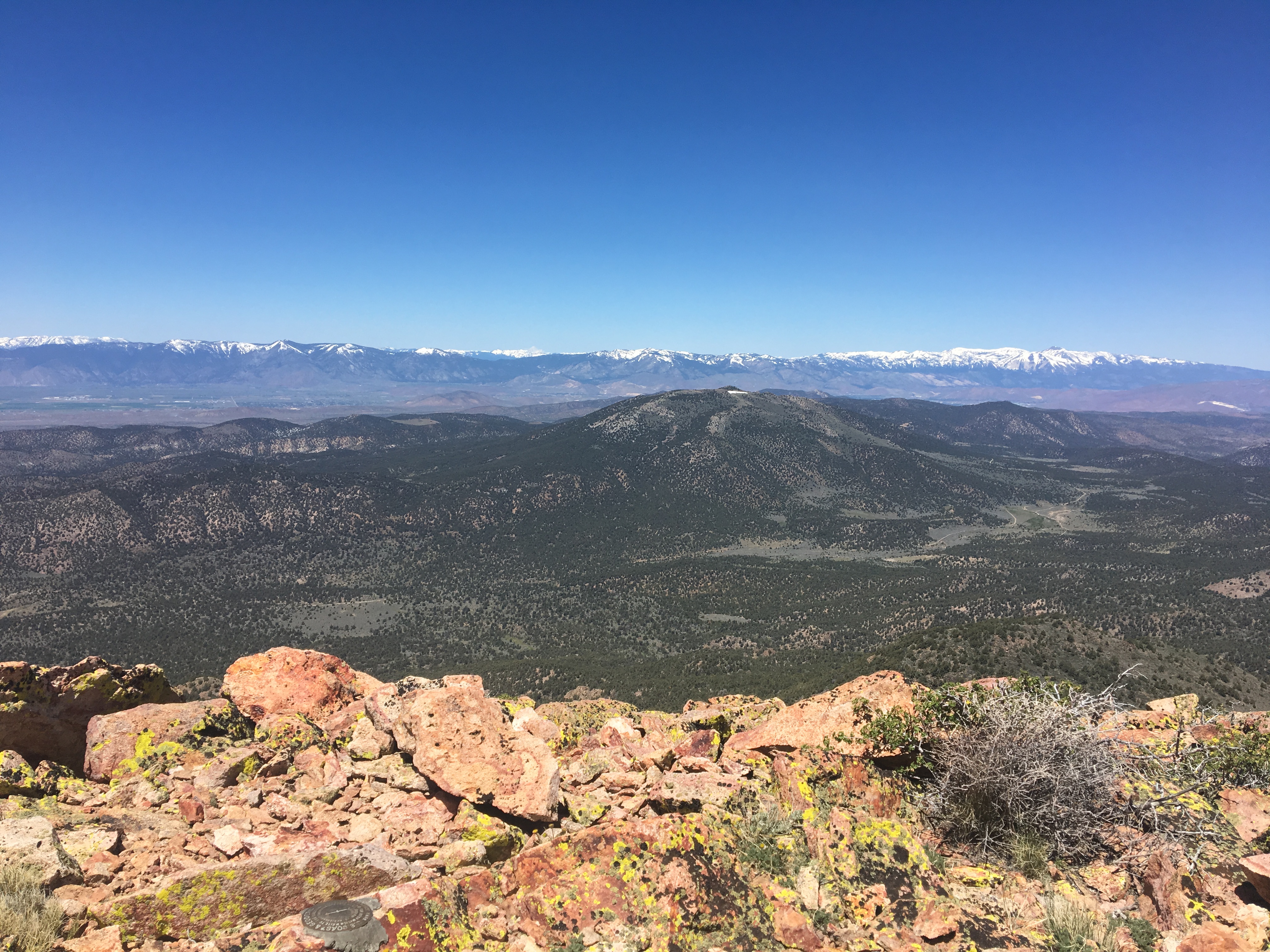 Lake Tahoe is opposite those snow covered peaks. Looking west from the Pine Nuts