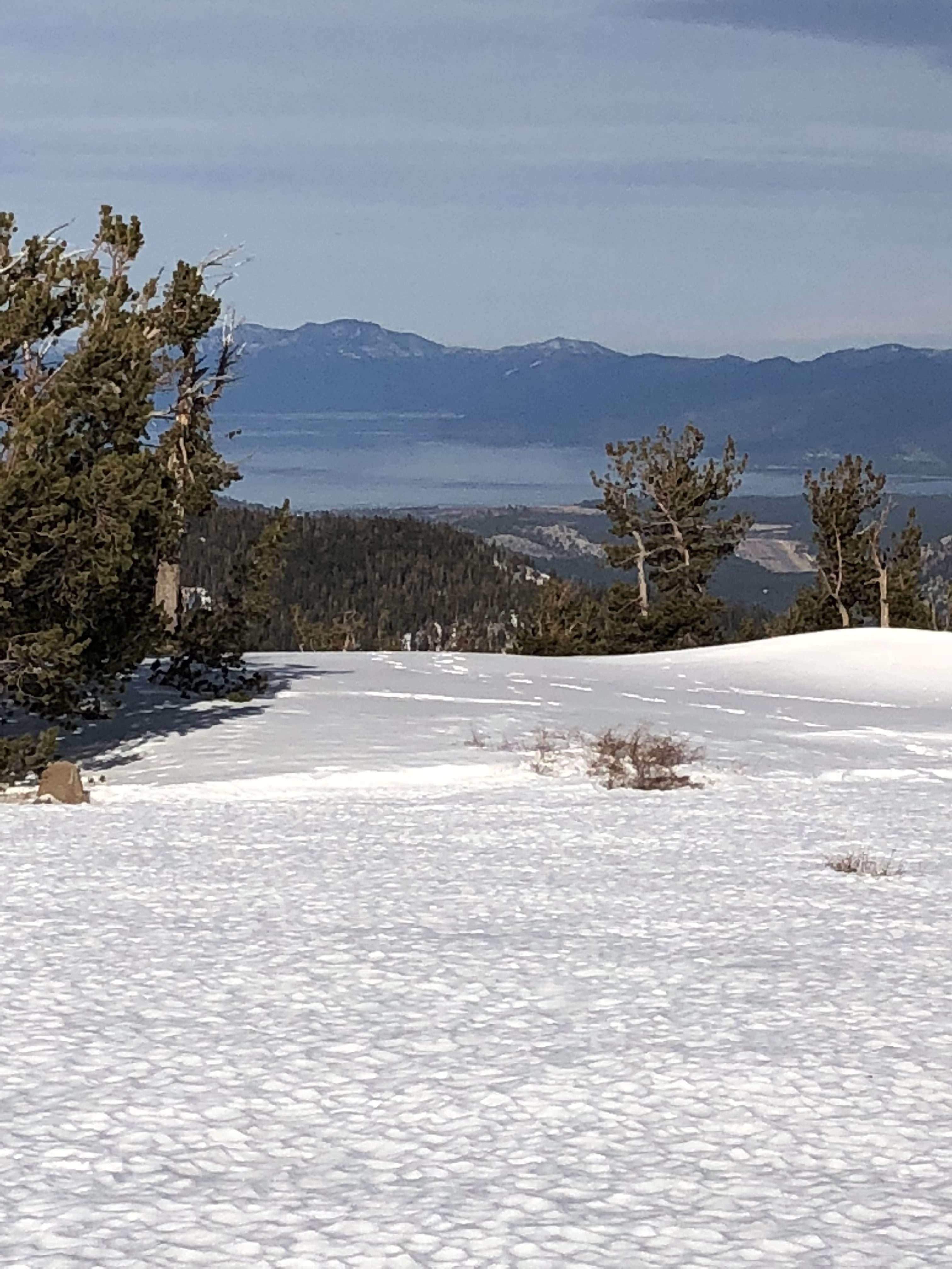This peak is across the valley from Kirkwood Ski Resort, and has a couple of cell towers available (but you will need to move around for it). Actually Kirkwood’s larger cross country ski area is directly below the ridge crest you walk in. I had contemplated scouting that parking area but .